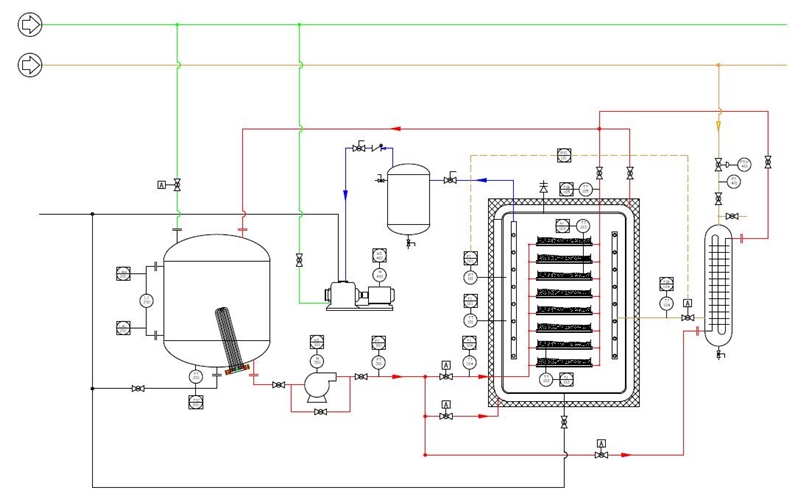 设备管路系统由控制阀门、真空泵、过滤器、安全阀、疏水阀等专用阀件构成。关键部件为控制阀门和真空系统。